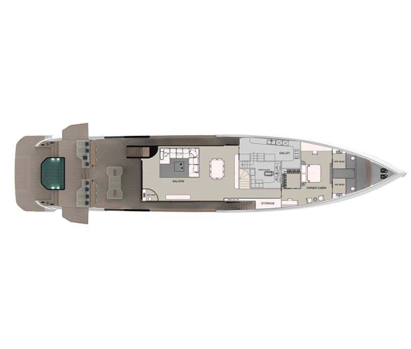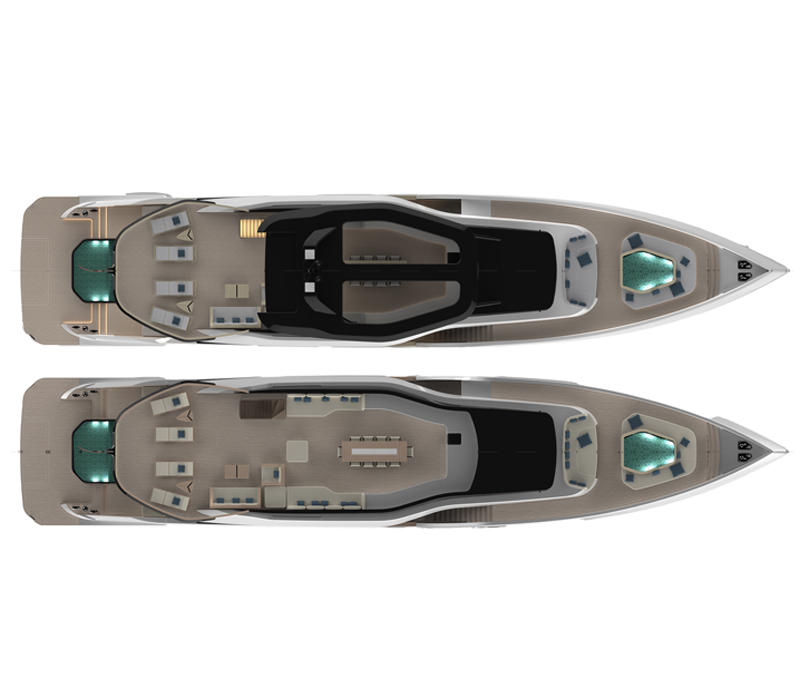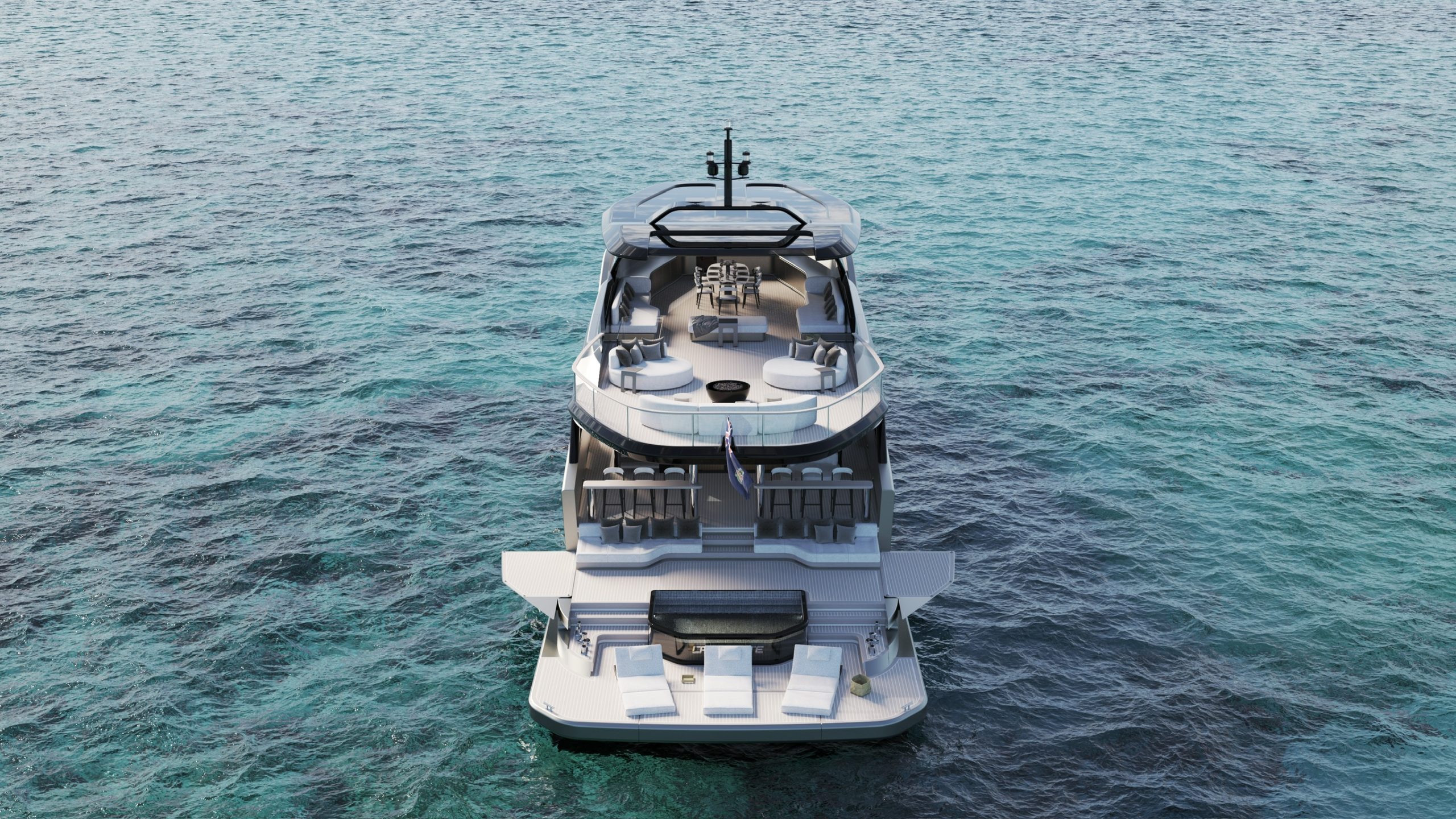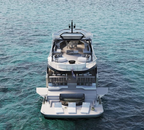 2 opening back cover options; It turns the back area into a beach club when the yacht is anchored.