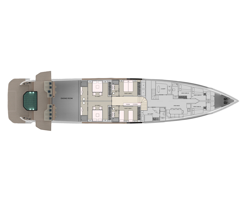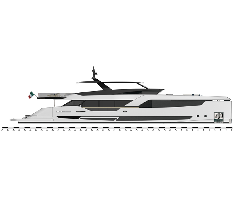 CRESCENTE; It is an unforgettable Nova Superyachts model with a length of 40 meters and a volume of 299 Gross Tons. This unique Italian-designed model's production area is Turkey, one of the most important regions of superyacht production.